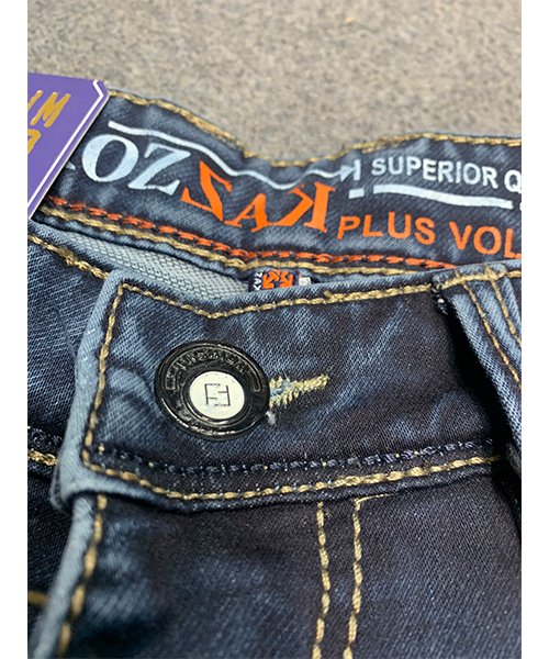 Premium Knit Denim pants for HG Denim Co, crafted with 13-ounce GSM fabric for durability and comfort. Available in sizes 30-38, featuring a 38–39-inch length for a perfect fit.